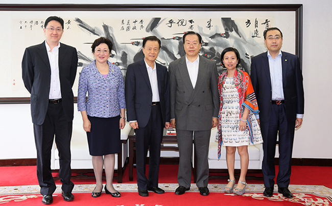 世茂國際總裁許薇薇、華通資本有限公司管理合夥人袁浩;集團鄭江副總會計師參加會見。(集團辦公廳)