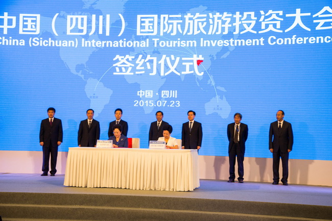 7月23日,集團(tuán)姜巖總經(jīng)理、鄭江副總會計(jì)師、戰(zhàn)發(fā)部陳賢君總經(jīng)理、資產(chǎn)板塊田群總經(jīng)理、景區(qū)板塊曲濤常務(wù)副總經(jīng)理等一行參加了在成都舉辦的“中國(四川)國際旅遊投資大會”。會上,姜巖總經(jīng)理代表集團(tuán)與四川省政府簽訂了《促進(jìn)中國港中旅集團(tuán)與四川省政府關(guān)於旅遊業(yè)發(fā)展戰(zhàn)略合作協(xié)定》。四川省委書記王東明、省長魏宏、國家旅遊局局長李金早、中國房地產(chǎn)業(yè)協(xié)會會長劉志鋒等領(lǐng)導(dǎo)出席會議。中國國旅集團(tuán)董事長兼總經(jīng)理王為民、華僑城集團(tuán)公司副總裁劉平春 、大連萬達(dá)集團(tuán)董事長王健林、新希望集團(tuán)董事長劉永好等120多家境內(nèi)外知名旅遊企業(yè)負(fù)責(zé)人參加了會議。