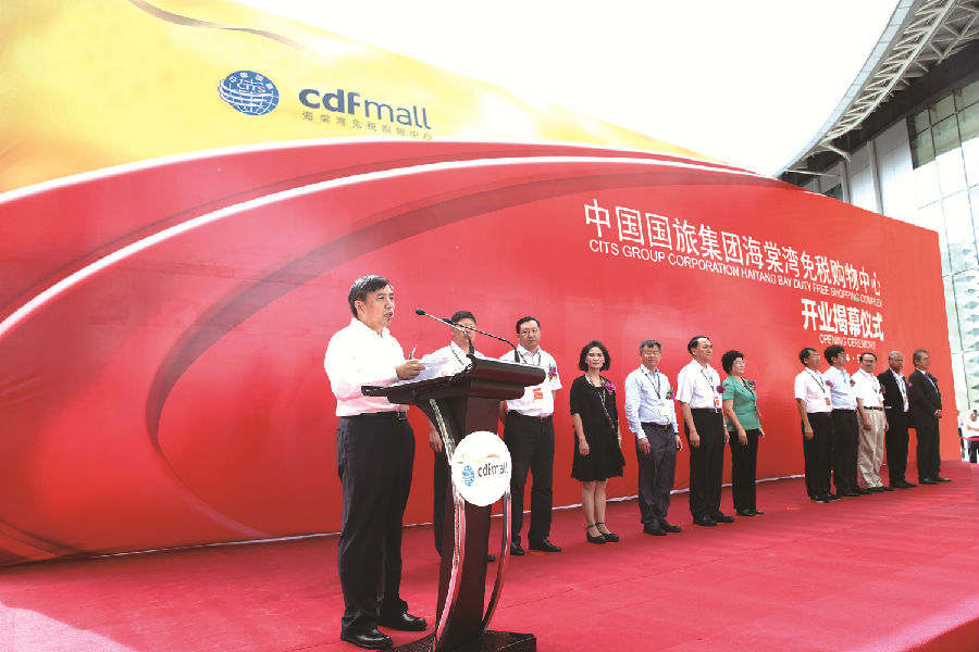 開業(yè)儀式上,王為民發(fā)表了熱情洋溢的講話。他首先代表國旅集團(tuán)對各界的關(guān)心和支持表示衷心的感謝,隨后簡要介紹了國旅集團(tuán)的基本情況、主要業(yè)務(wù)和今后發(fā)展方向。他回顧了海南離島免稅政策、三亞市內(nèi)免稅店發(fā)展歷程。2007年,國旅集團(tuán)提出“在海南開展離島免稅購物”的構(gòu)想,并配合海南省委省政府爭取離島免稅政策;2011年,中免三亞免稅店作為離島免稅業(yè)務(wù)試點啟動,極短時間內(nèi)便迅速成為海南省日均接待游客過萬的旅游景點之一,至今已累計接待顧客1200多萬人次?!奥糜渭用舛愘徫铩币殉蔀楹D下糜蔚男旅?。他向與會嘉賓介紹了海棠灣免稅購物中心項目的特點和優(yōu)勢,并表示項目的落成開業(yè)將極大地釋放海南離島免稅政策紅利,助力海南國際旅游島建設(shè),也必將成為我國免稅業(yè)發(fā)展的里程碑。他說,海棠灣免稅購物中心是全球最大的免稅商業(yè)綜合體,總面積達(dá)12萬平米、集購物、休閑、娛樂、餐飲等多功能于一身,具有國際先進(jìn)水準(zhǔn)、地標(biāo)性的建筑。它集合優(yōu)勢資源,招商引進(jìn)了300個全球頂級時尚品牌和精心準(zhǔn)備的超過10萬個單品;其中有的是攜手合作伙伴,打造的最新、最時尚的概念店、全球最大和亞洲最大的品牌旗艦店。國旅集團(tuán)將以一流的品牌、一流的商品、一流的服務(wù)、一流的環(huán)境,為海南省、三亞市和來海南的廣大游客帶來持續(xù)不斷的驚喜和發(fā)現(xiàn)!展望未來,國旅集團(tuán)將進(jìn)一步堅定深耕海南旅游市場的信心和決心,通過積極整合旗下免稅、旅行社等多業(yè)務(wù)板塊資源,不斷發(fā)揮在資金、品牌資源、運營、管理等方面的優(yōu)勢,利用海棠灣免稅購物中心這個全新平臺,積極推動國際旅游島建設(shè),為廣大游客奉獻(xiàn)更為豐富多彩的旅游購物體驗。他堅信,有社會各界的鼎力支持和關(guān)愛,有全體員工的智慧和奉獻(xiàn),海棠灣免稅購物中心一定會拿出驕人的業(yè)績,成為國家海岸獨具魅力的亮麗風(fēng)景,為海南旅游業(yè)發(fā)展做出積極的貢獻(xiàn)!