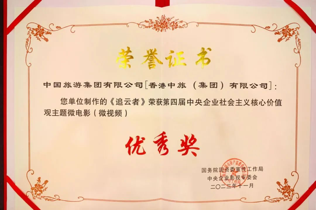 近日,在國務(wù)院國資委宣傳工作局主辦的2023年中央企業(yè)社會(huì)主義核心價(jià)值觀主題微電影(微視頻)展映征集活動(dòng)上,中免投資發(fā)展有限公司(中國旅游集團(tuán)中免股份有限公司全資子公司)制作的《追云者》代表中國旅游集團(tuán)從500余部參評(píng)作品中脫穎而出,榮獲“第四屆中央企業(yè)社會(huì)主義核心價(jià)值觀主題微電影(微視頻)”優(yōu)秀獎(jiǎng)(敬業(yè)奉獻(xiàn)類)。
