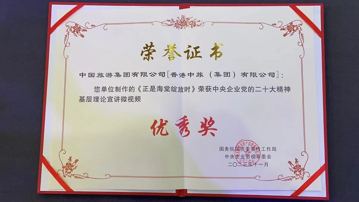 近日,由國務院國資委宣傳工作局主辦的2023年中央企業(yè)社會主義核心價值觀主題微電影(微視頻)展映征集活動和中央企業(yè)黨的二十大精神基層理論宣講優(yōu)秀微視頻展示活動在京成功舉辦。兩項活動各評選出百部優(yōu)秀作品,其中,由中國旅游集團選送,中免集團三亞市內(nèi)免稅店有限公司(中國旅游集團中免股份有限公司全資子公司)拍攝制作的微視頻《正是海棠綻放時》榮獲“中央企業(yè)黨的二十大精神基層理論宣講微視頻”優(yōu)秀獎。