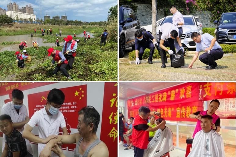 中免(海口)投資公司黨支部聚焦服務(wù)工程建設(shè)、豐富企業(yè)文化、踐行社會(huì)責(zé)任等方面把實(shí)事辦實(shí)辦好。為海口國(guó)際免稅城項(xiàng)目員工“送清涼”,購(gòu)置了防暑防曬物資,備好冰鎮(zhèn)綠豆湯,不定期推出“驚喜菜”。精心打造“黨史文化墻”,設(shè)立“圖書角”,開展“微課堂”讀書活動(dòng),為員工訂閱報(bào)紙期刊,開展職工趣味運(yùn)動(dòng)會(huì)、友誼籃球賽,全面更新公司形象展示標(biāo)識(shí)和宣傳欄,設(shè)置新人榜,不斷打造企業(yè)文化新亮點(diǎn)。黨支部聯(lián)合當(dāng)?shù)毓?huì)、共青團(tuán)等機(jī)構(gòu)共同開展環(huán)保志愿活動(dòng)和公益普法活動(dòng),提供免費(fèi)體檢、義剪服務(wù),以實(shí)際行動(dòng)關(guān)愛自貿(mào)港基層建設(shè)者,彰顯央企風(fēng)范。