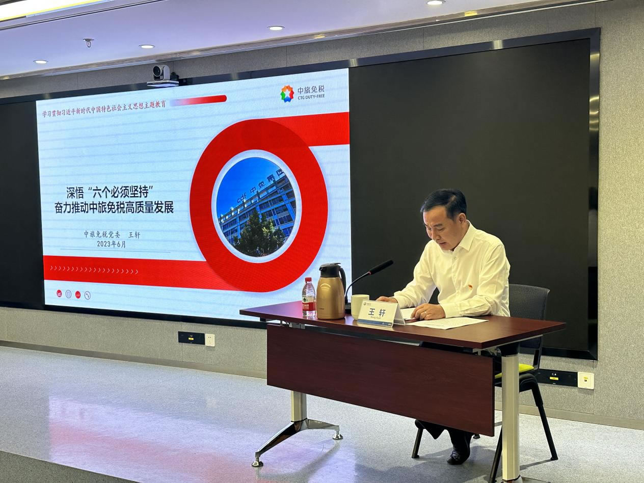 為貫徹落實(shí)習(xí)近平總書(shū)記提出的“領(lǐng)導(dǎo)干部要上講臺(tái)、講黨課,以身作則、以講促學(xué)”的政治要求,按照黨中央關(guān)于主題教育部署要求和集團(tuán)黨委工作安排,6月25日上午,中旅免稅黨委書(shū)記、總經(jīng)理、主題教育領(lǐng)導(dǎo)小組組長(zhǎng)王軒同志以《深悟“六個(gè)必須堅(jiān)持”奮力推動(dòng)中旅免稅高質(zhì)量發(fā)展》為題,講授學(xué)習(xí)貫徹習(xí)近平新時(shí)代中國(guó)特色社會(huì)主義思想主題教育專(zhuān)題黨課。中旅免稅黨委委員、副總經(jīng)理王延光主持。集團(tuán)主題教育第一巡回指導(dǎo)組成員楊翠華、李征、劉展愷線上列席指導(dǎo)。